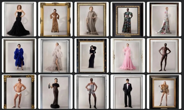 正如预期,Demna延续了自己一贯的人物志手法,以家族族谱的形式,构建一个想象中的Gucci家族群像,画框中的他们并非孤立形象,而暗示了充满了故事情节的张力。
