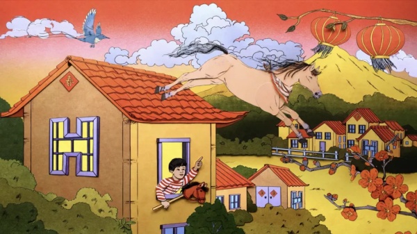 紧接着在中国新年的企划中,爱马仕再次延续插画方式,奔腾的马匹由简单克制的线条勾勒,通过拼贴和数字动画的复合效果表现马踏飞燕等动态。