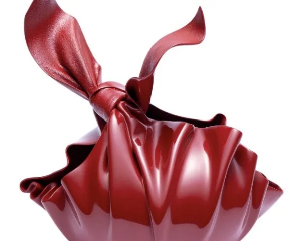在竹艺、编织陶土、折叠纸等手工艺之外,值得关注的是,其中一件作品通过重型金属成型与化学做旧技术打造的钢制容器,还有一件以皮革重构漆艺技法的作品,这些作品明显呈现出更贴近新创意总监的未来感视觉作品。