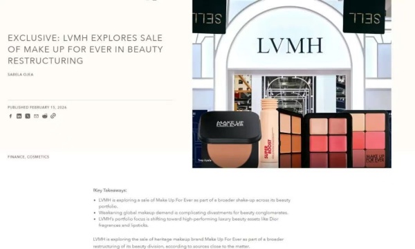 LVMH正考虑出售旗下历史悠久的彩妆品牌Make Up For Ever,同时评估护肤品牌Fresh以及与流行歌手蕾哈娜合作创立的Fenty Beauty的部分股权。