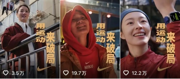 即使在业绩终端仍不乐观的中国市场,品牌文化的改变也已经能够亲身体感,今年春节期间,Nike“以运动来破局”创作的一系列广告创意,围绕运动核心,触及当下春节返乡、社交攀比以及自我成长的压力情绪,获得广泛的社交媒体讨论。